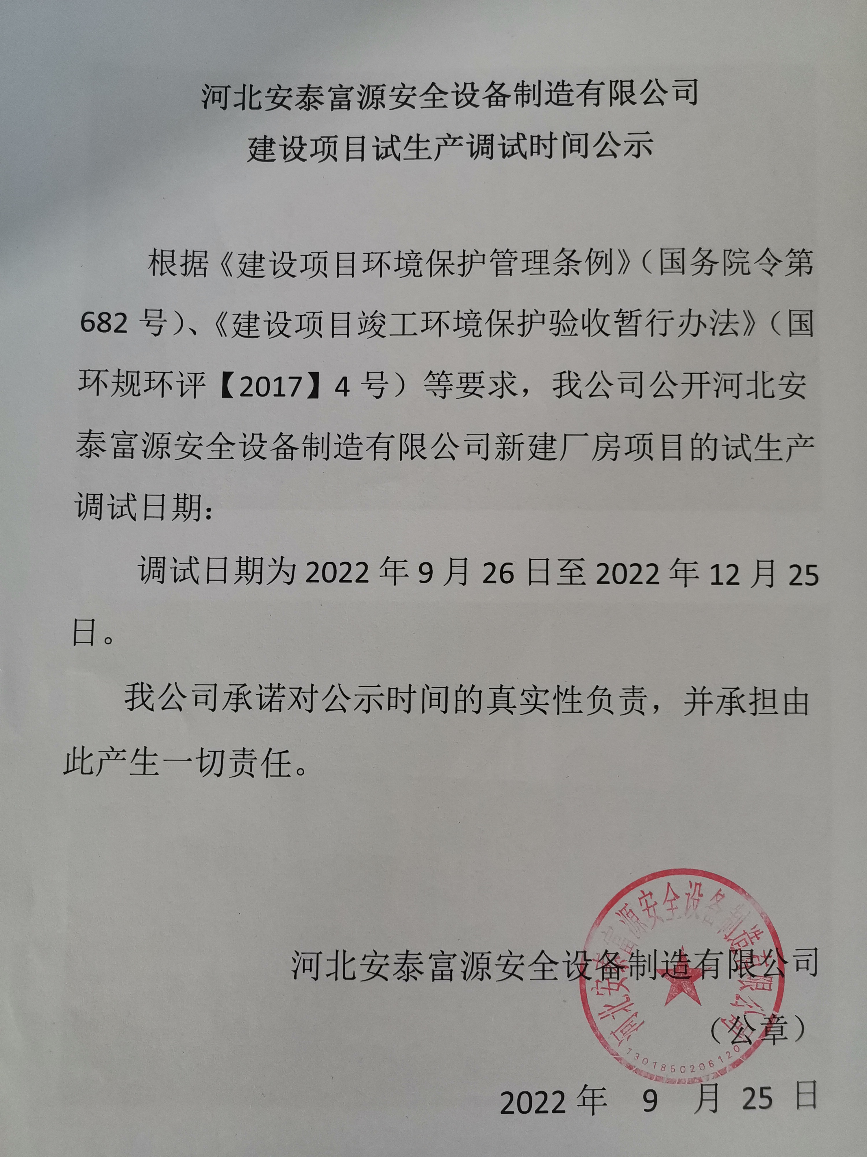 新建厂房试生产公告